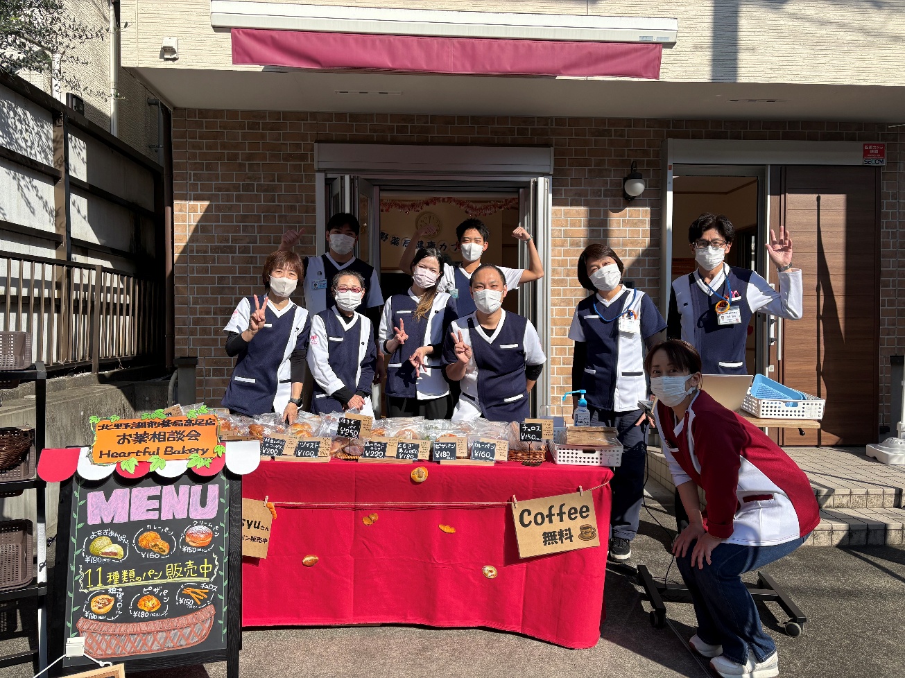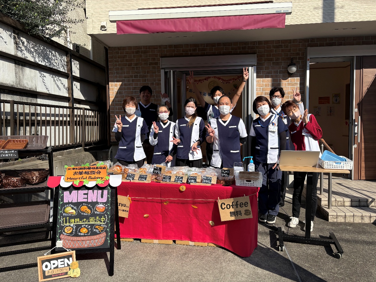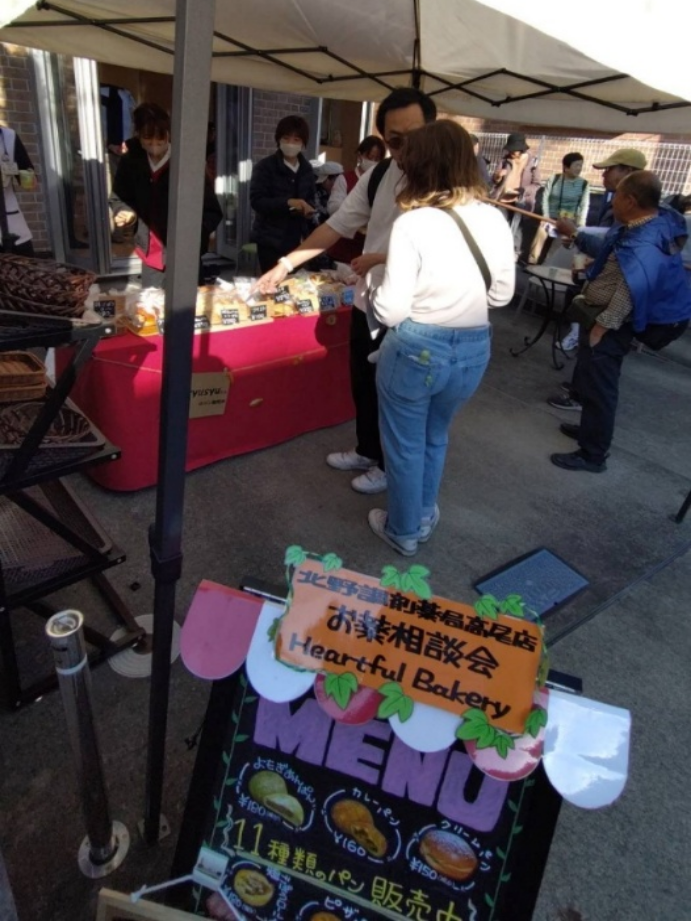 地域活動この度、いちょう祭りコラボ企画として、就労支援B型事業所「Bonsyusyu(ボンシュシュ)」より仕入れたパンの販売と、北野薬局健康カフェを実施いたしました