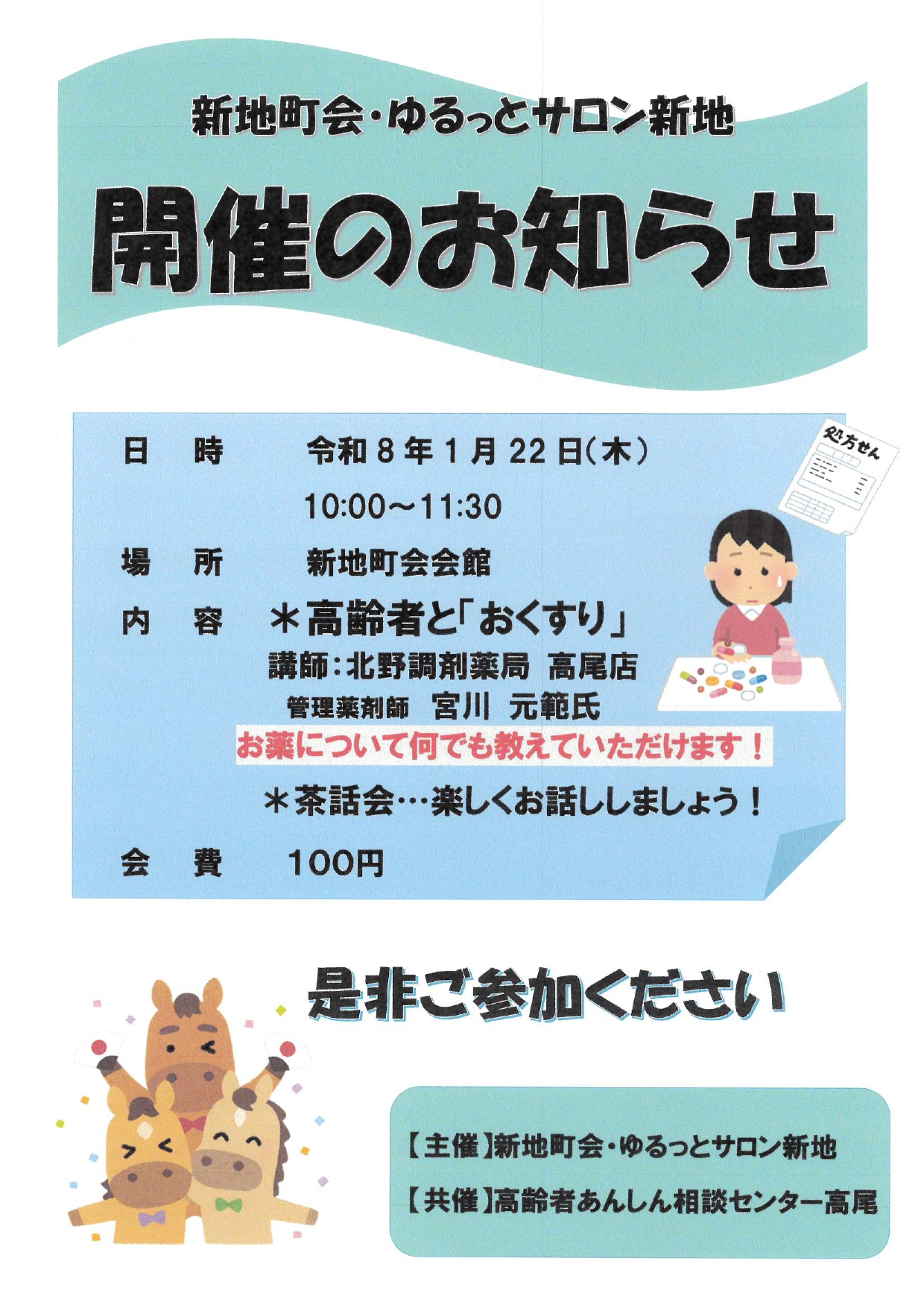 地域活動2026年1月22日(木)、八王子市薬剤師会「出前講座」を、新地町会の新地会館にて実施いたしました。