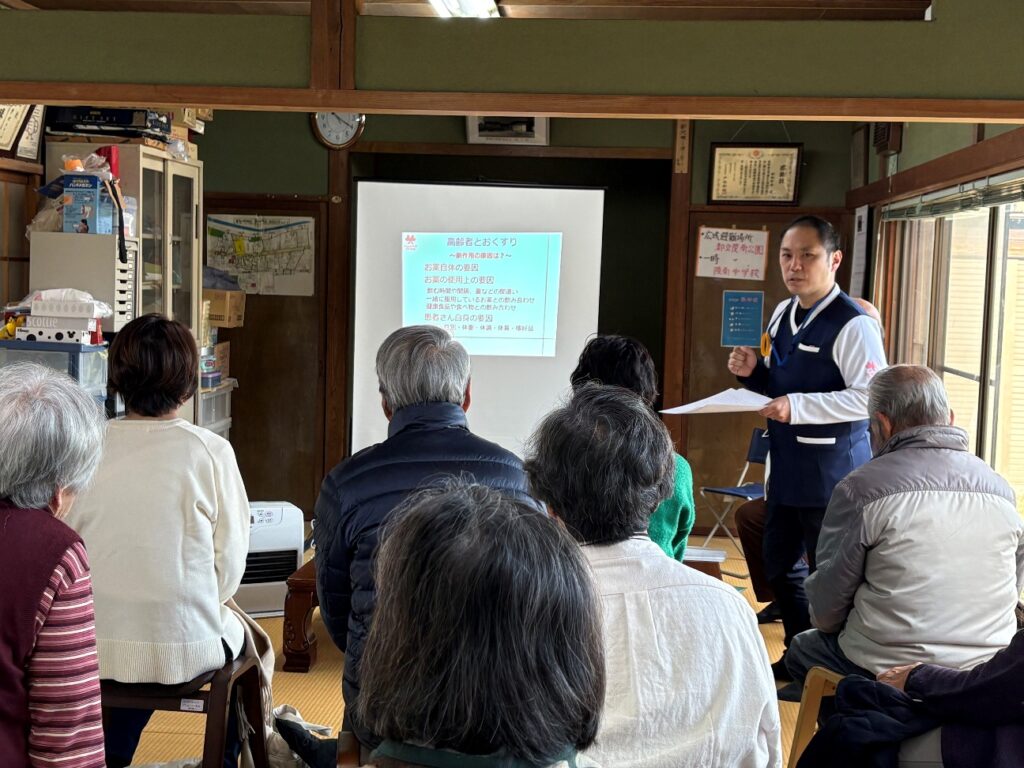 皆様が真剣に耳を傾けてくださり、質疑応答では日頃のお薬に関する疑問など、さまざまな質問が寄せられました。お薬は身近な存在である一方で、分かりづらさや不安を感じている方が多いことを改めて実感する機会となりました。